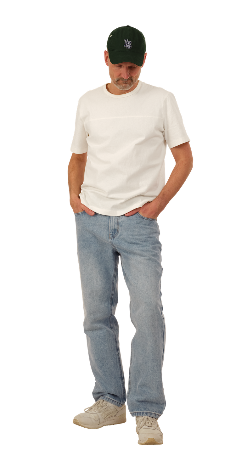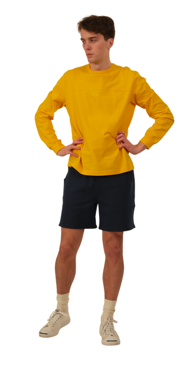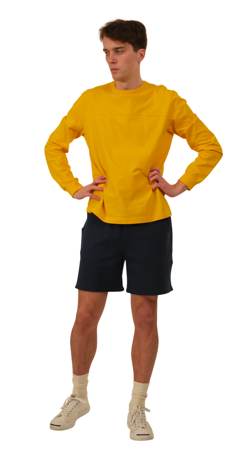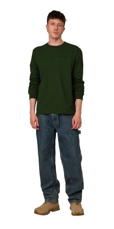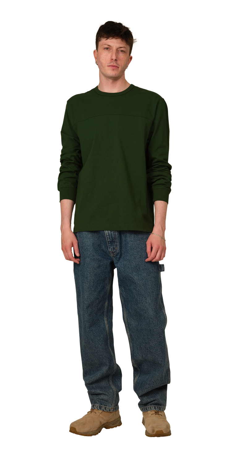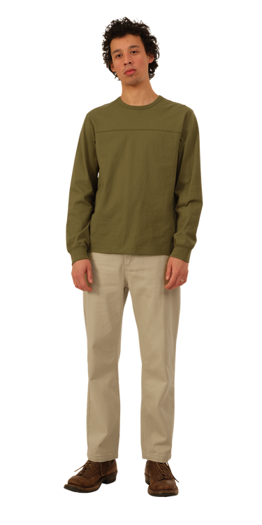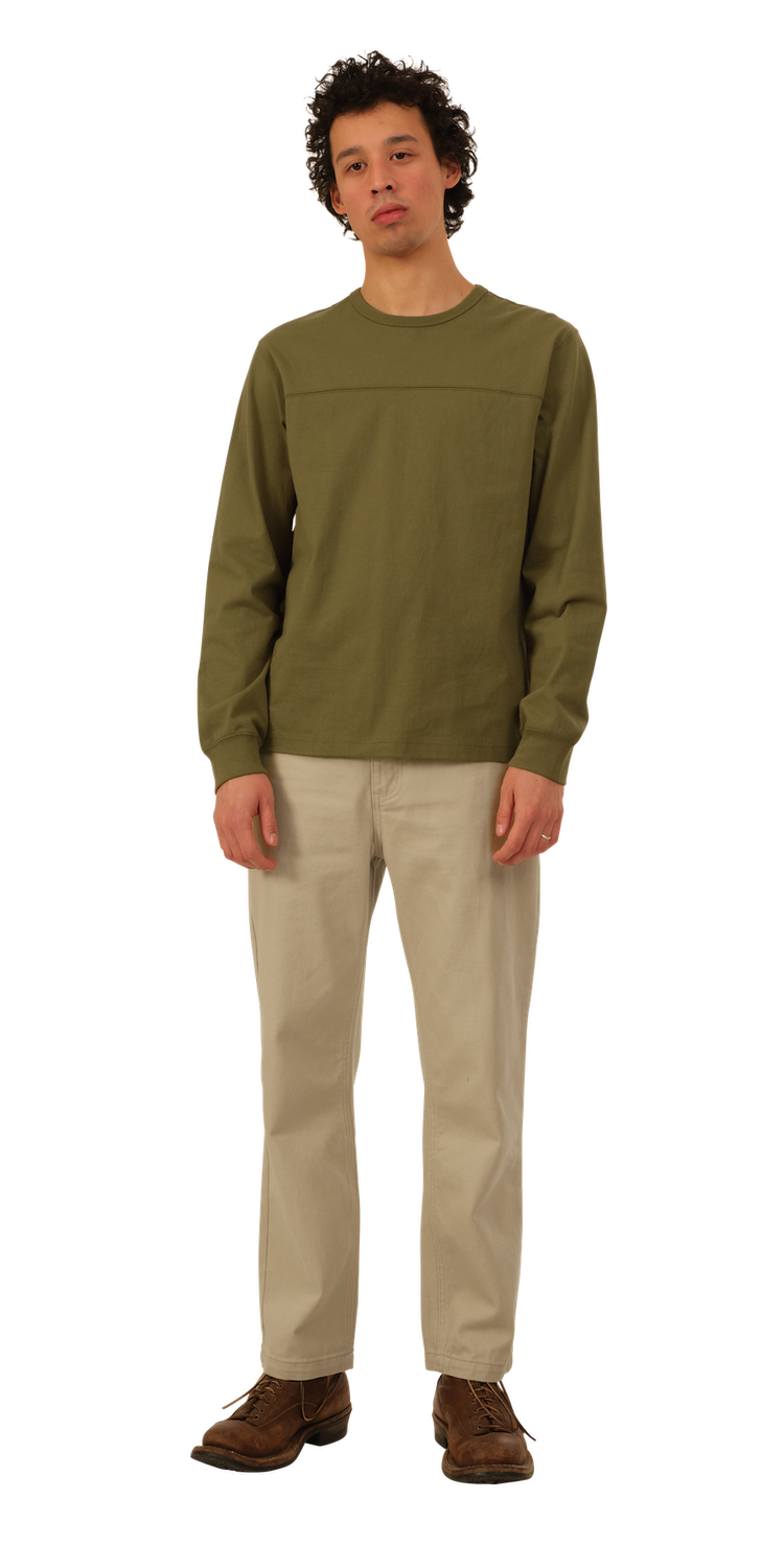The Long Sleeve Tee is made of mid-weight cotton jersey. It has a signature yoke, ribbed cuff, and double needle top-stitch throughout.