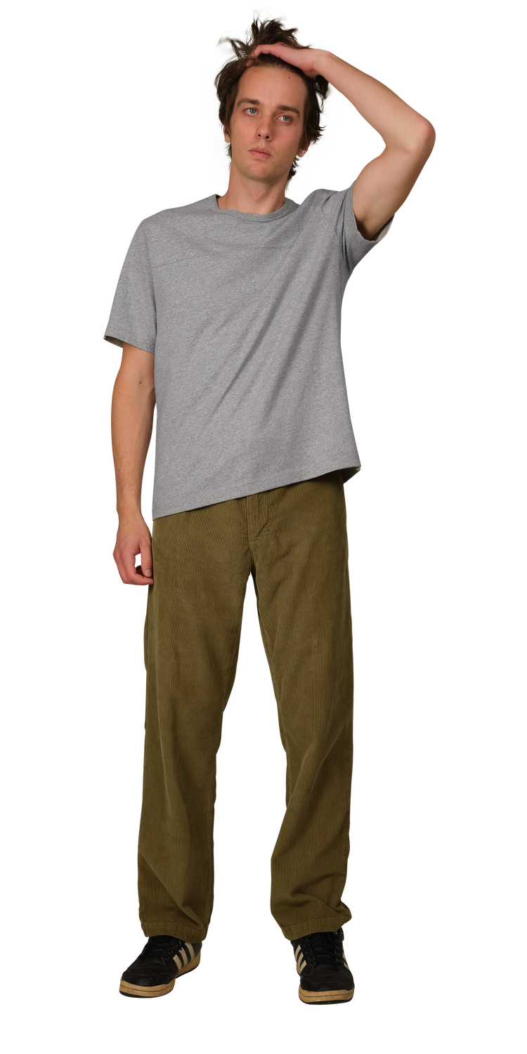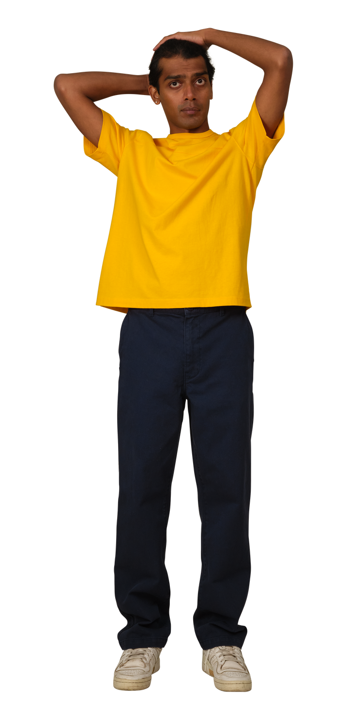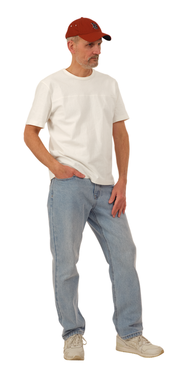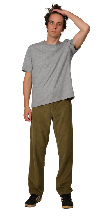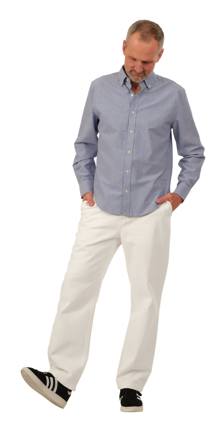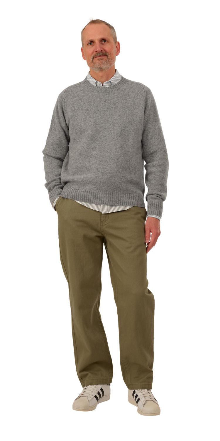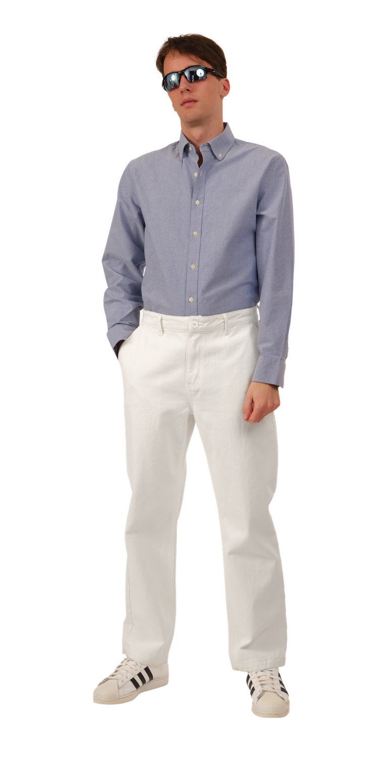 Chinos are made in a thick, washed twill. They have 4 pockets and a relaxed fit.