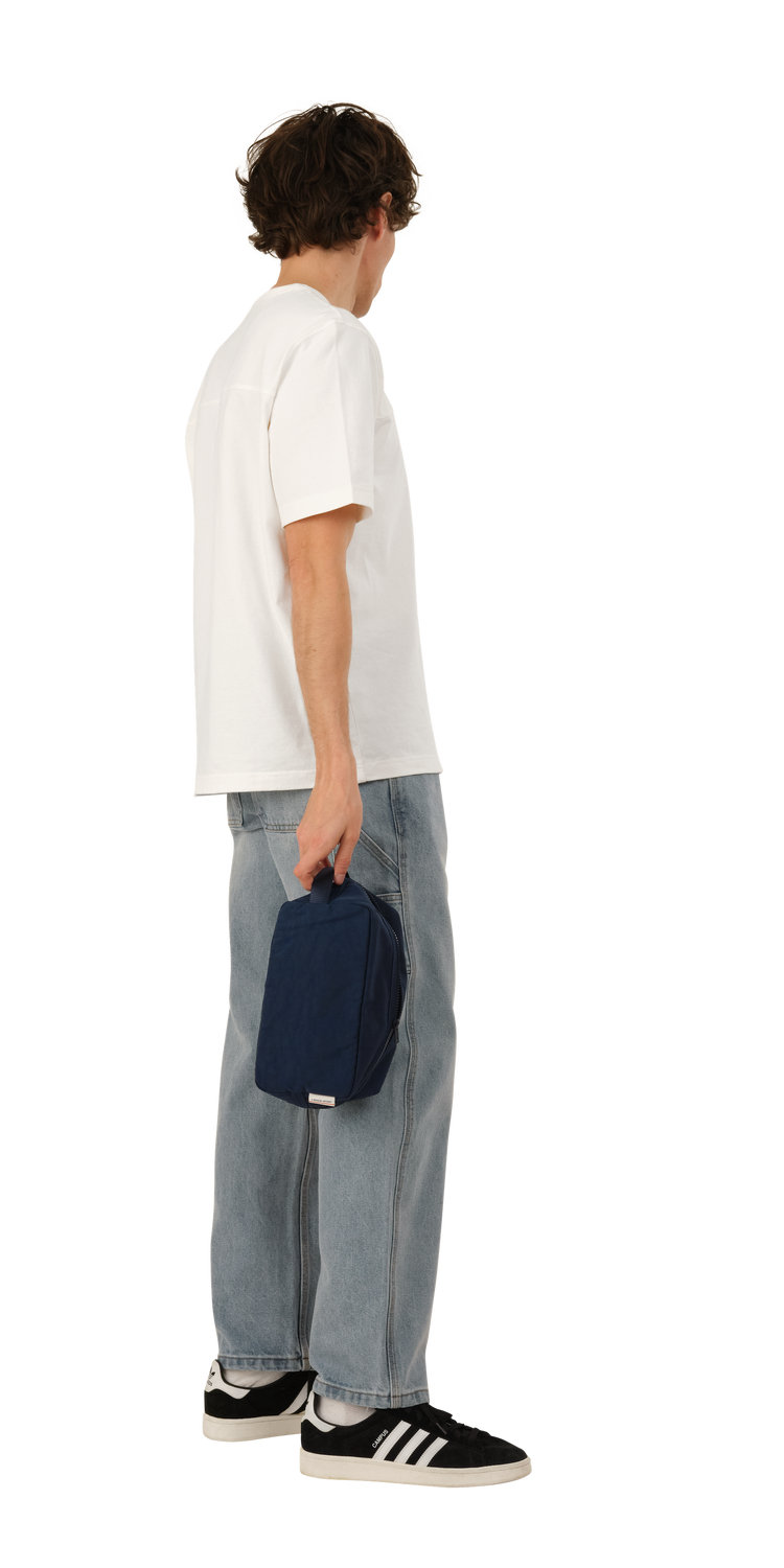 Duffle Bag is made of a washed nylon fabric which gives each item unique depth and character. Featuring an interior zip pocket and a classic nylon handle.
