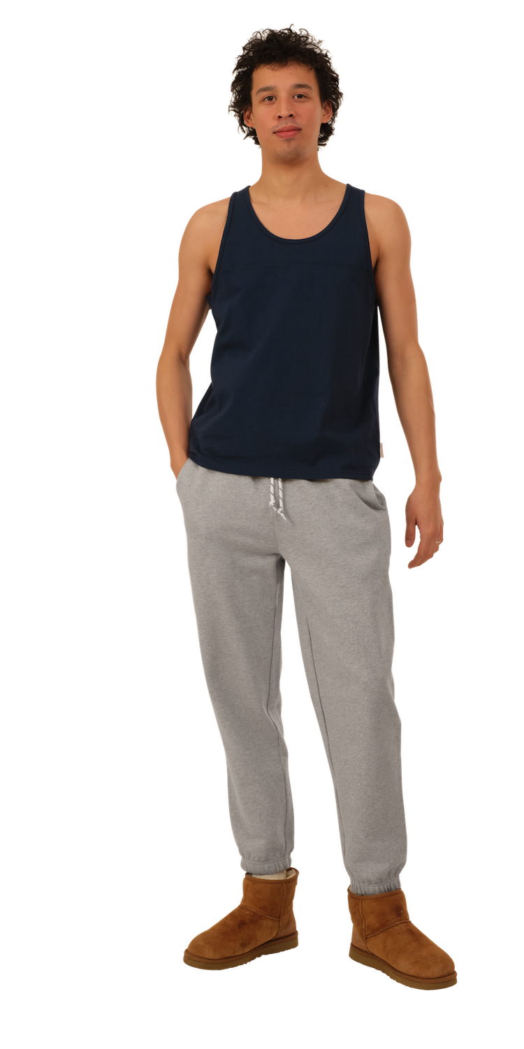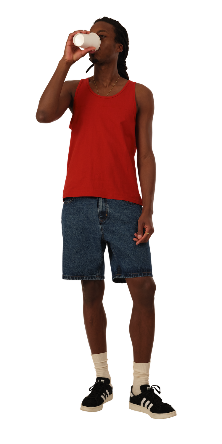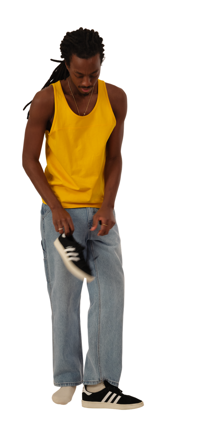 Tanks are made from our signature 100% long staple cotton Jersey. The fit is relaxed with a yoke seem across the chest.