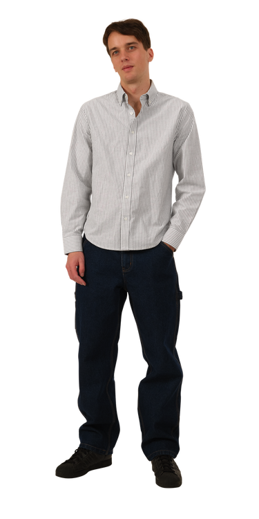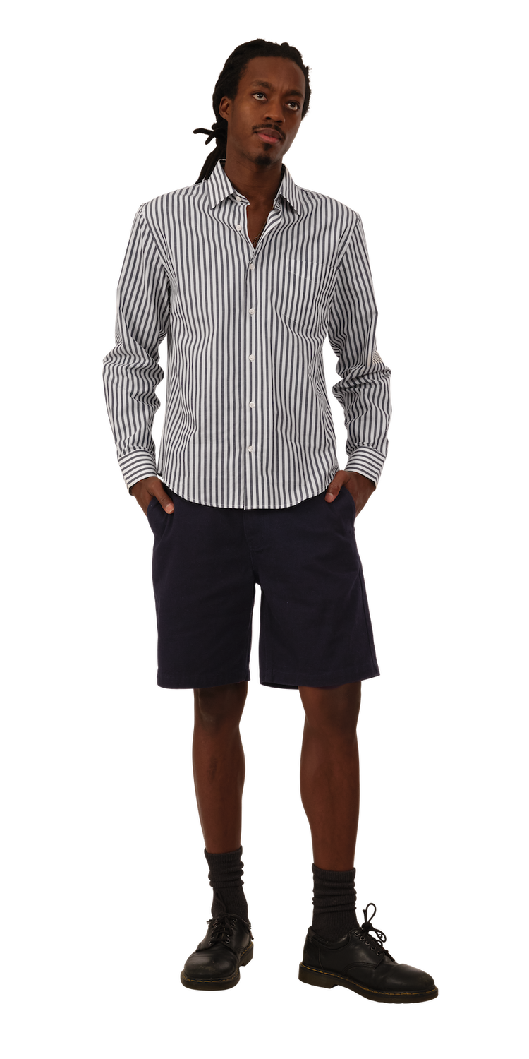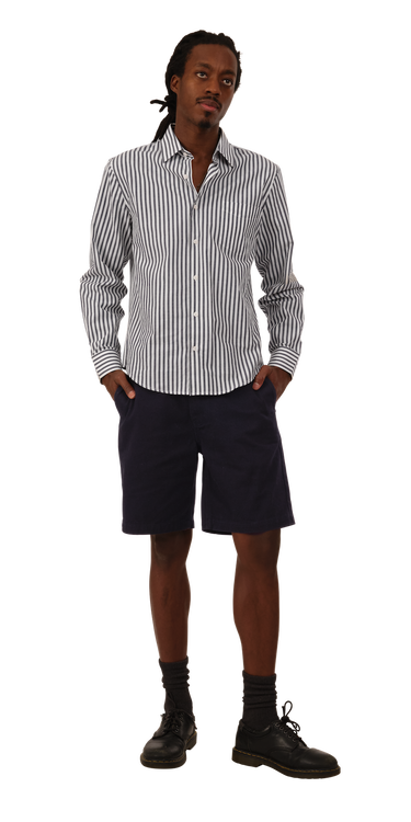 Formal Shirts are made of cotton poplin in a bold stripe, with a tailored yet generous fit.