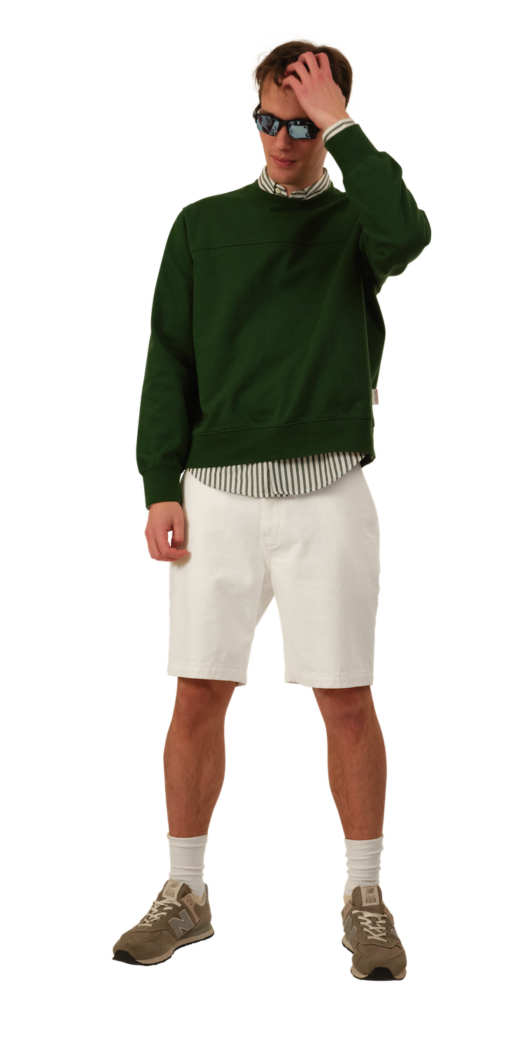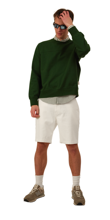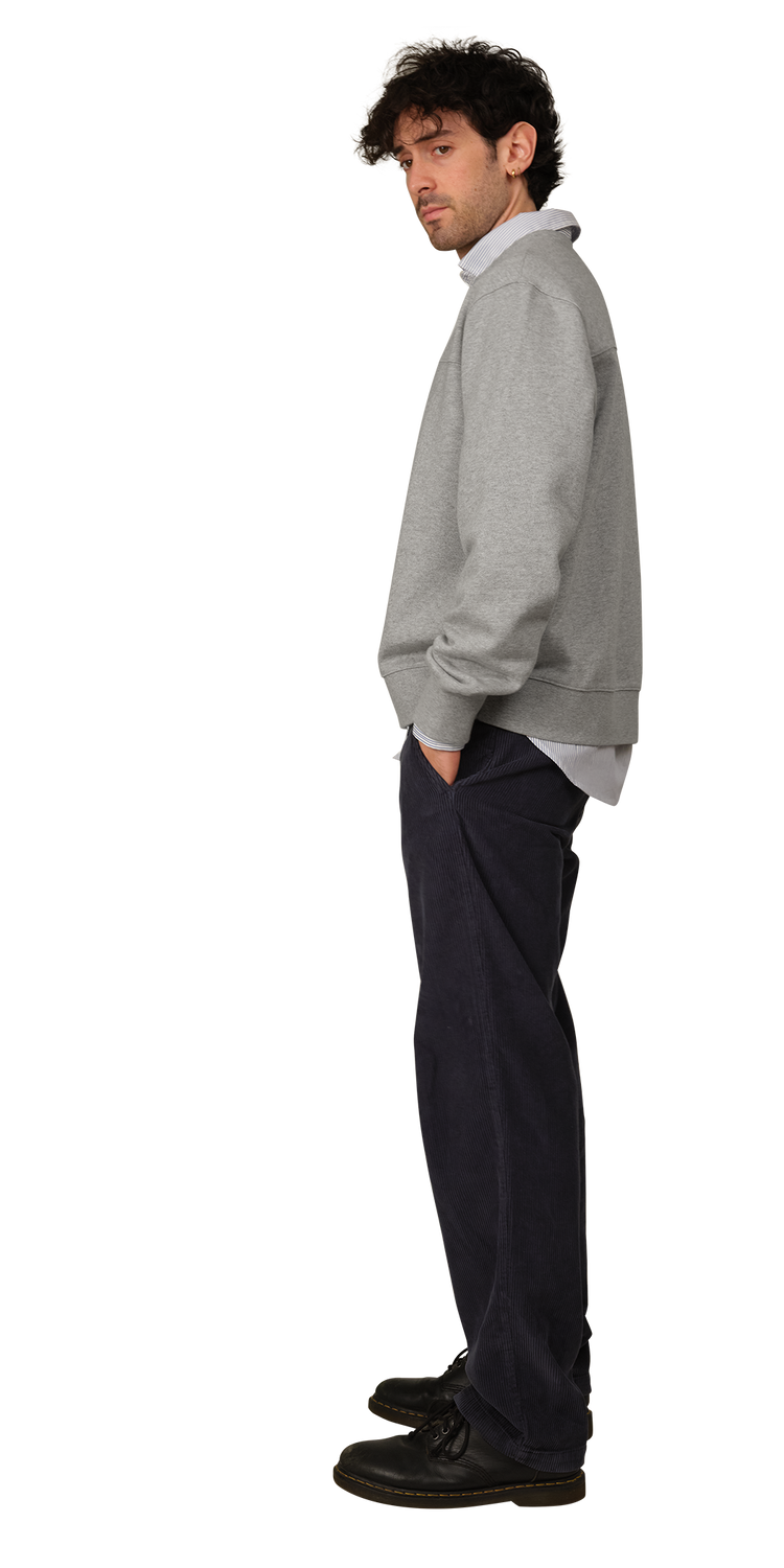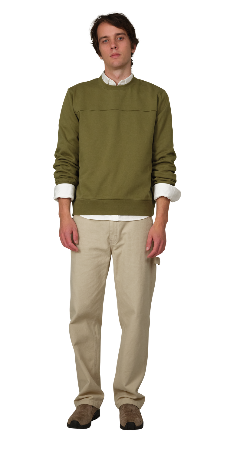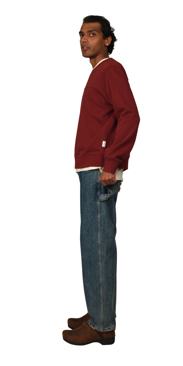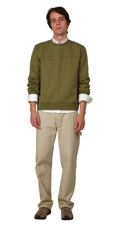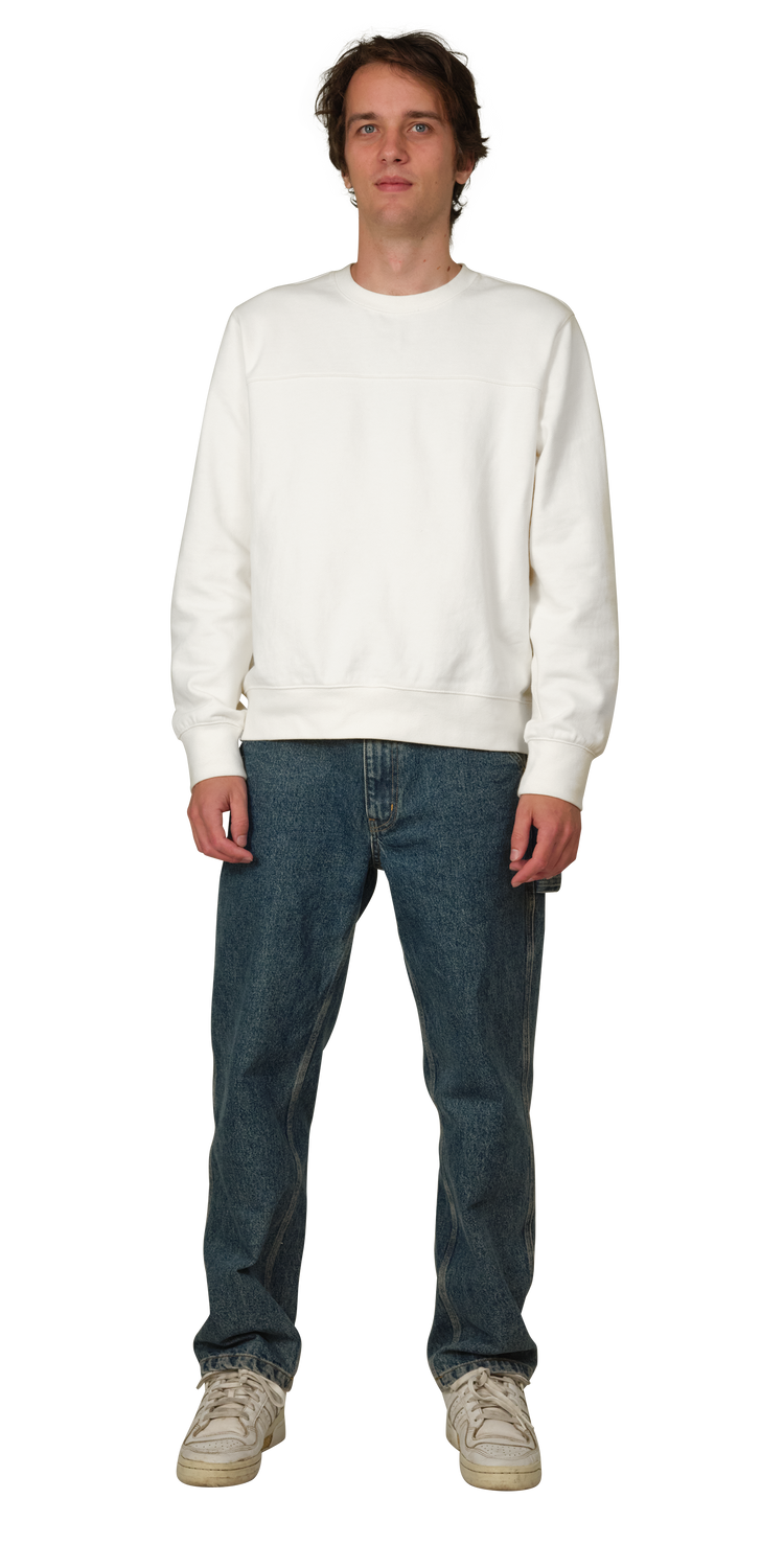 Crewneck Sweatshirts are made of heavy, dry terry. It has a relaxed fit, a dropped front neck, and eased ribbing at the hem.