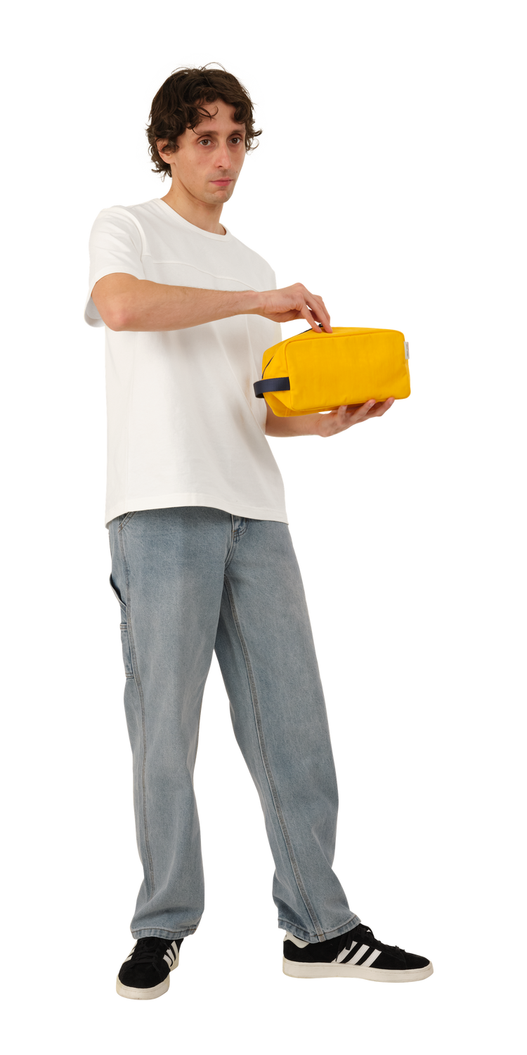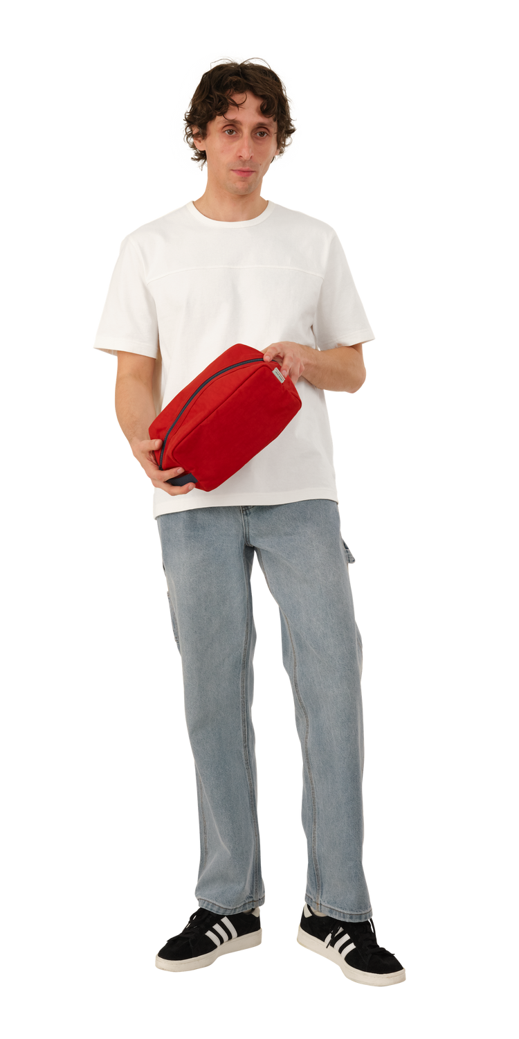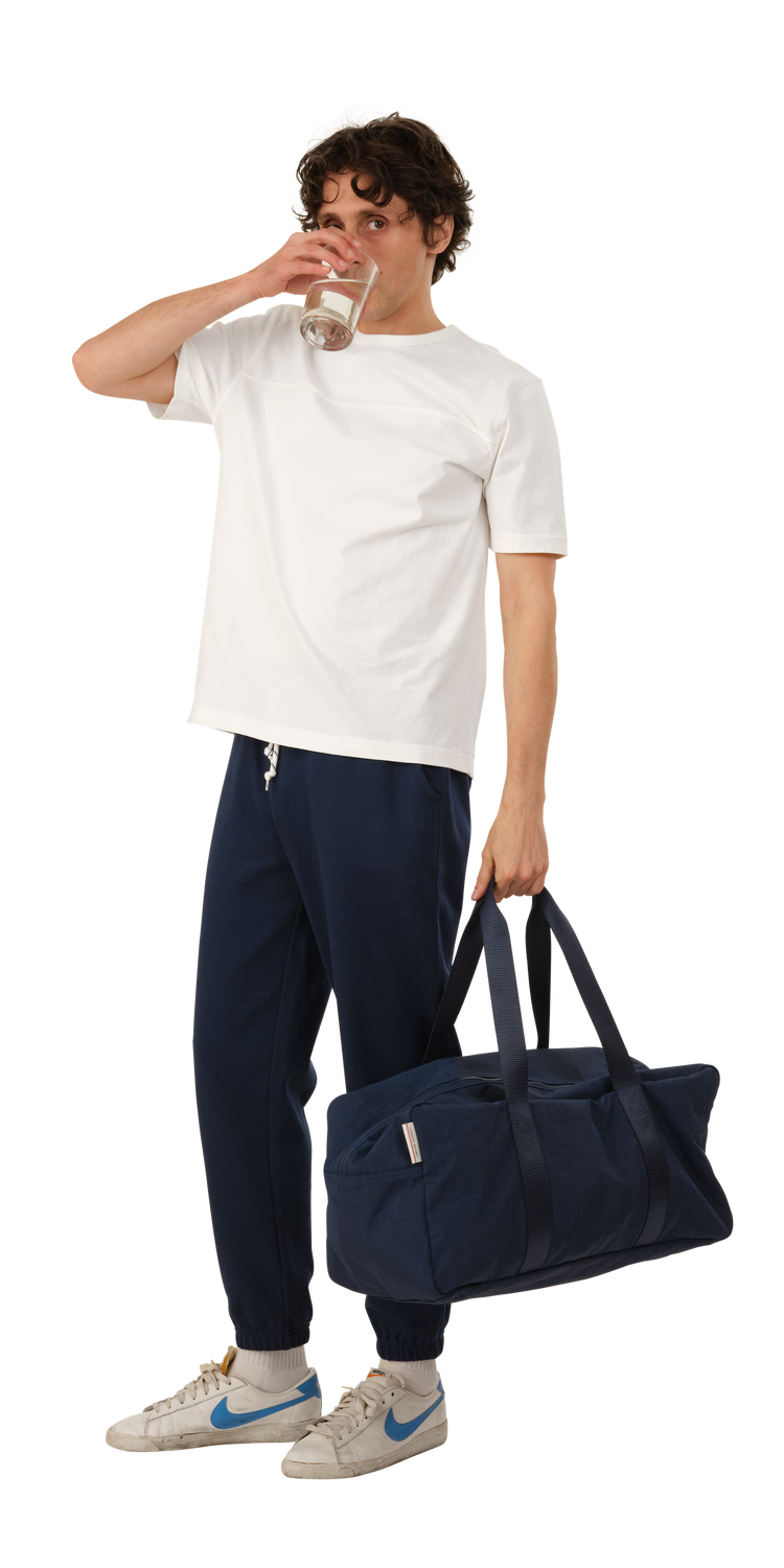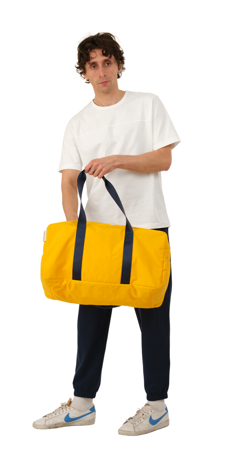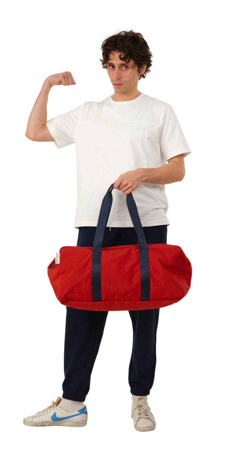 Duffle Bag is made of a washed nylon fabric which gives each item unique depth and character. Featuring an interior zip pocket and a classic nylon handle.