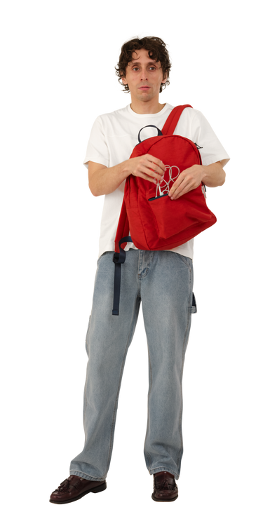 The Tote is made of heavy cotton canvas with color combo of white and vibrant primary colors. An interior gusset in contrast white canvas expands vertically to give you extra space when zipping.