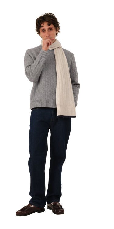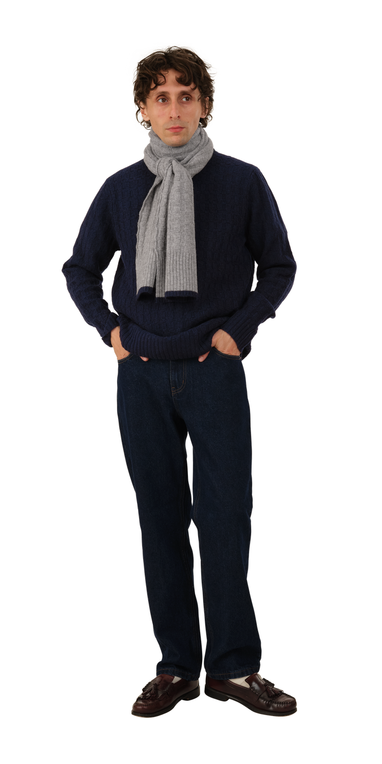 Wool Basketweave Scarf is a 100% Wool Scarf in a "Basketweave" knit with a contrast rib trim at the hem.