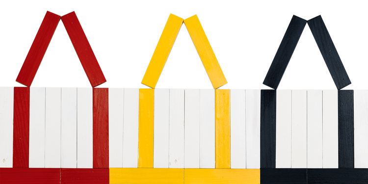 The Tote is made of heavy cotton canvas with color combo of white and vibrant primary colors. An interior gusset in contrast white canvas expands vertically to give you extra space when zipping.