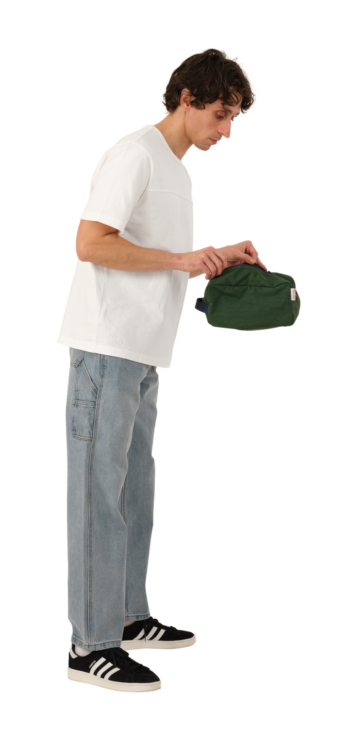Duffle Bag is made of a washed nylon fabric which gives each item unique depth and character. Featuring an interior zip pocket and a classic nylon handle.