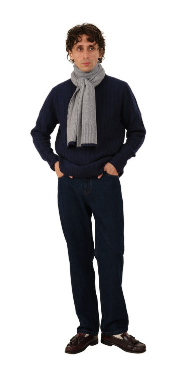 The Thin U-Neck Sweater is made of a wool recycled nylon blend. It has a dropped neckline, long cuffs, and is breathable. An all-seasons sweater.