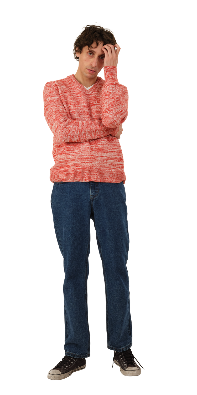 Marled Sweater has a shallow "U" shaped neck made in marled bright 100% cotton yarns.