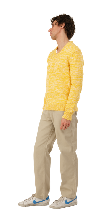 The U-Neck Sweater is made of cotton. It has a dropped neckline, a side vent, and is drapey. Our signature neck shape.